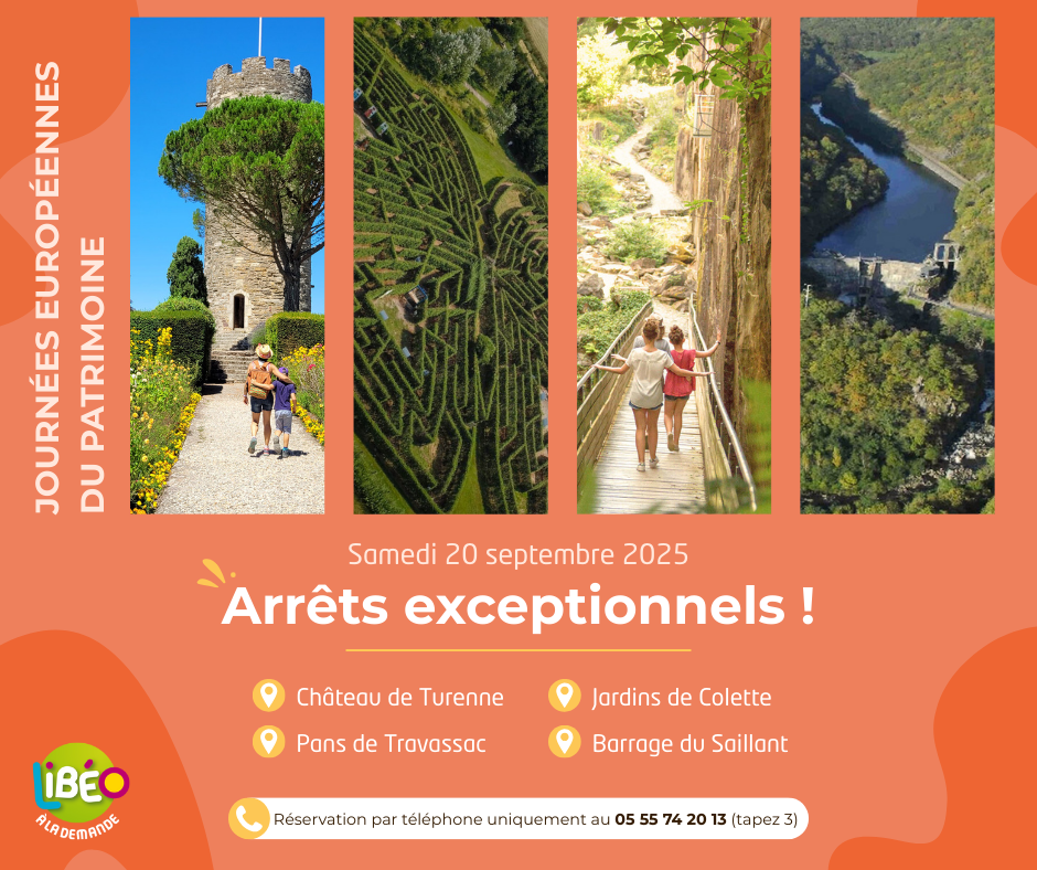 C'est la Rentrée du Transport Public ! Libéo vous propose de nombreuses animations durant cette semaine, pour se rencontrer et échanger sur les transports en commun. Découvrez ci-dessous le programme complet : ➡️ Le Jeu des mots cachés : 4 mots se sont cachés dans nos bus, saurez-vous les retrouver ? 🚌👀 Du 16 au 22 septembre, 4 mots se sont cachés à bord de nos bus. Pour les retrouver, il suffit de recomposer chaque mot avec les lettres que vous aurez découvert dans les bus Libéo. Munissez-vous du bulletin disponible à l'Agence des Mobilités et menez l'enquête ! A remporter : un pack mobilité comprenant 1 carnet de 10 voyages et 2h offertes d'autopartage ! ➡️ Présence de votre réseau Libéo sur les marchés d'Allassac🍄le vendredi 19/09, de Brive🦆 le samedi 20/09, et d'Objat🍏 le dimanche 21/09 ➡️ Présence de l'artiste Ynoxe sur notre stand du marché de Brive le samedi 20 septembre, pour une œuvre réalisée en direct !🎨 ➡️ A l'occasion des Journées Européennes du Patrimoine, votre réseau Libéo met en place des arrêts exceptionnels le samedi 20 septembre, sur le service Libéo à la Demande, vers des lieux incontournables de l'Agglo : le Château de Turenne👑, les Pans de Travassac🪨, les Jardins de Colette🌼et le Barrage du Saillant💦! ☎️Réservation uniquement par téléphone, au 05 55 74 20 13