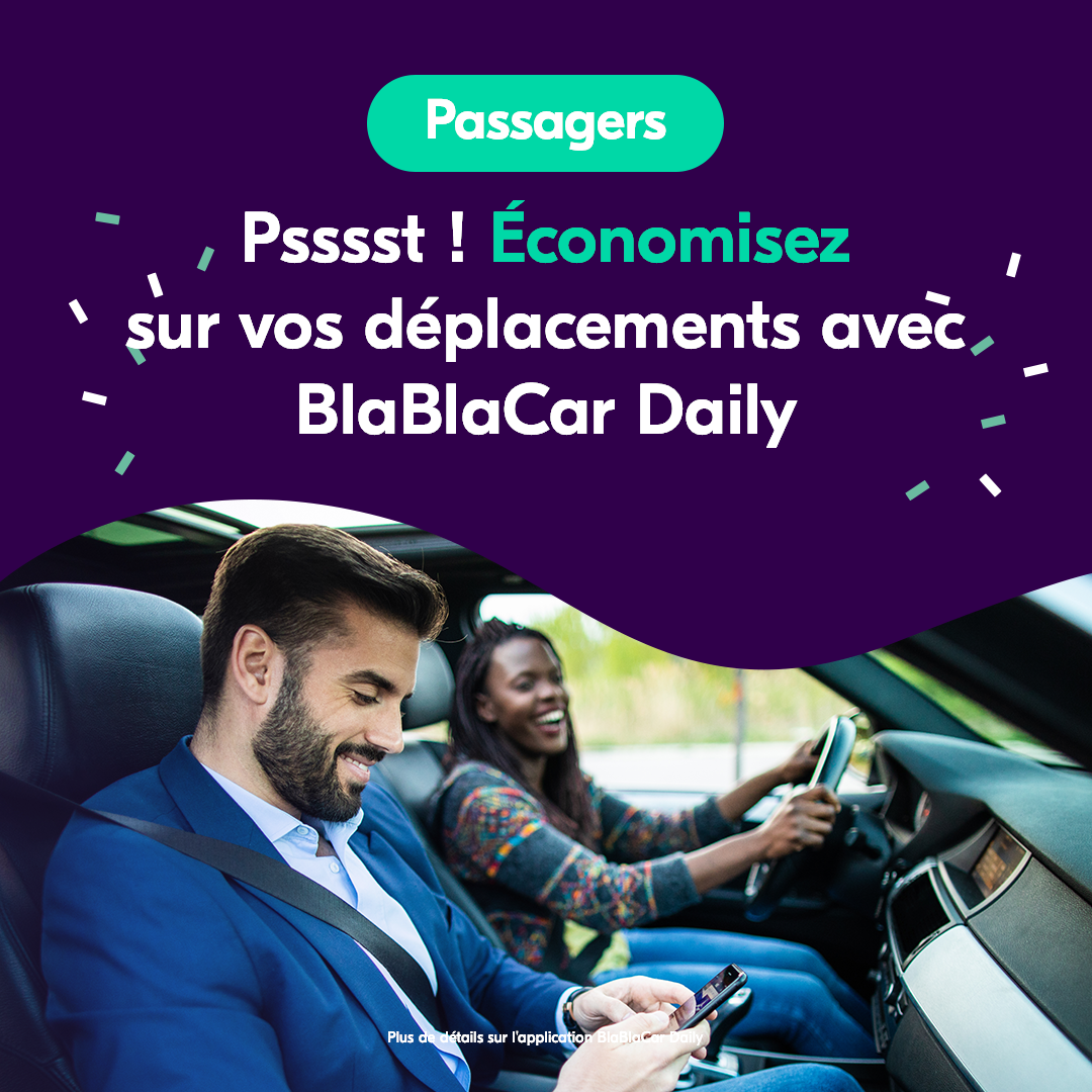 - Je télécharge l'application mobile BlaBlaCar Daily, disponible gratuitement sur iOS et Android, en tant que conducteur ou passager